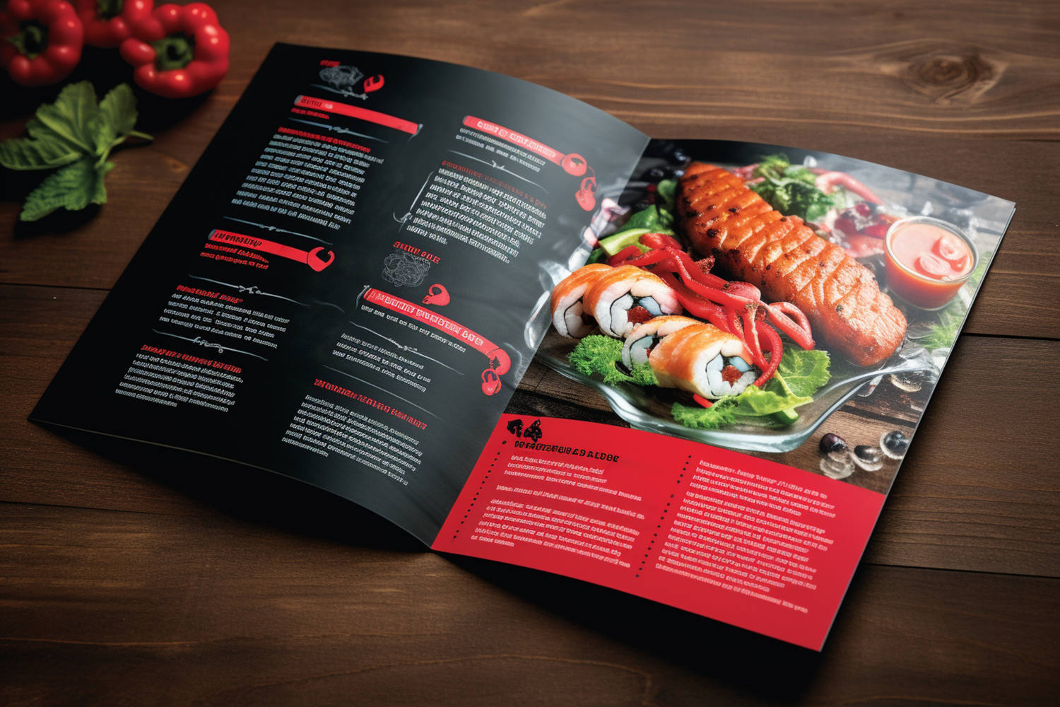 Presenta le tue proposte culinarie in modo elegante e professionale con menù personalizzati.